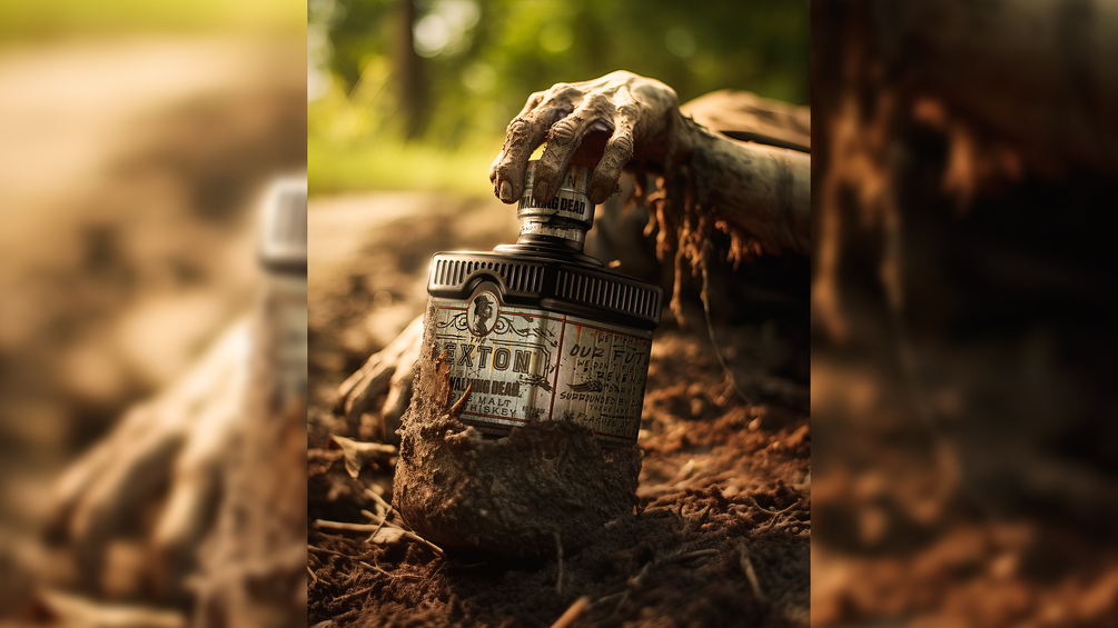 Personal advertising manipulation project, made with Photoshop + AI, using this incredible bottle of Sexton Single Malt Walking Dead Limited Edition, a label full of tributes to the TV series. A must have for any fan's bar collection. Limited edition bottle! 🧟♀️ 🥃🧟♂️